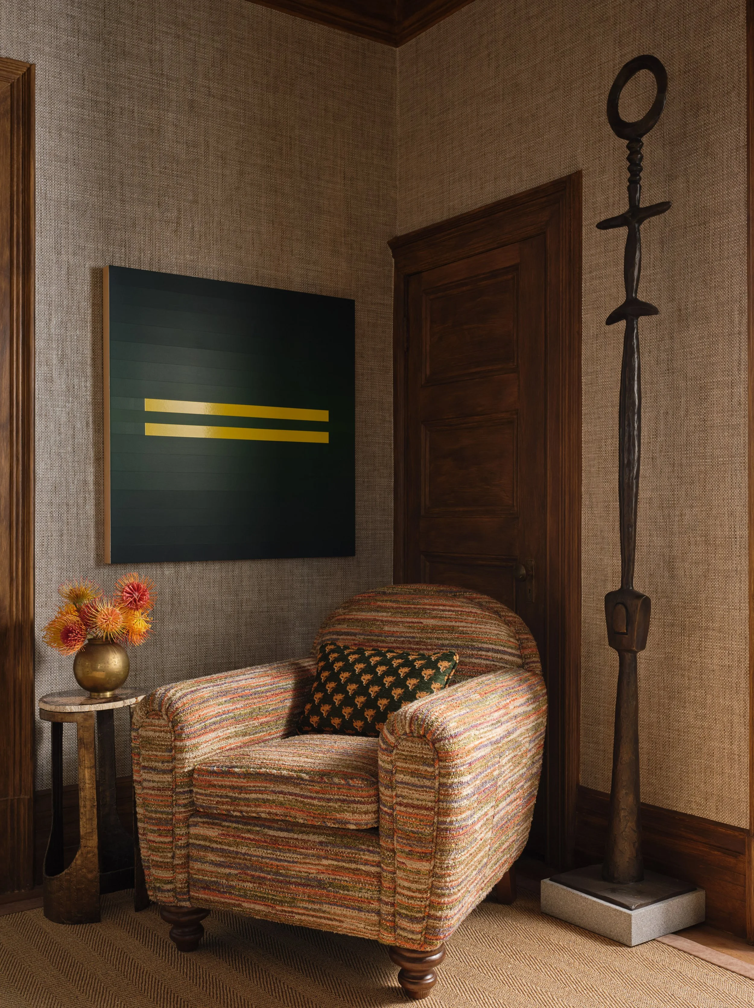 It’s a room about equilibrium. Pattern and structure. Ornament and restraint. Two perspectives meeting comfortably in the middle.